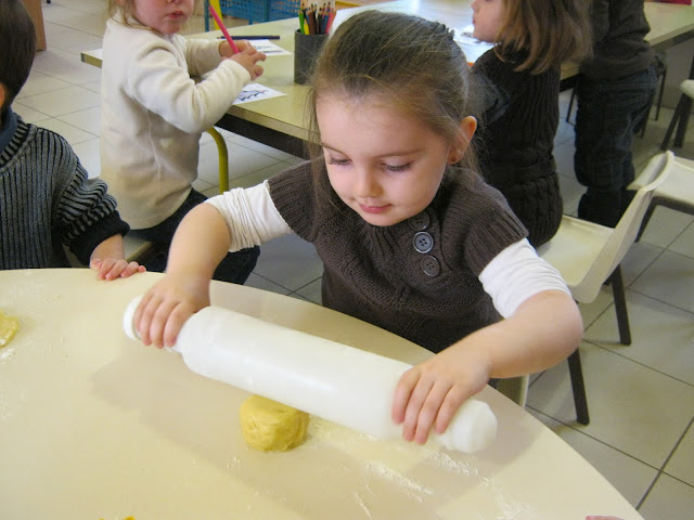 D'abord il faut préparer la pâte et l'étaler avec un rouleau.